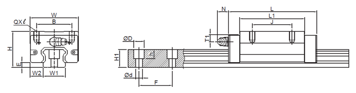 | H | W2 | E | W | B | J | L | L1 | Q×l | T1 | 油孔 | N | W1 | H1 | ΦD | h | Φd | F | |
