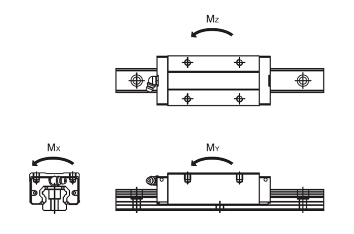 | 型號 | 額定負載kgf | 容許靜力矩 | 重量 | ||||||