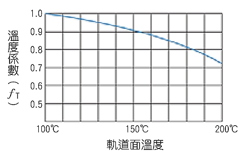 當使用RLBF滾珠花鍵的環境超過100℃的高溫時·考慮到的溫度系數同時,注意滾珠花鍵也有必要使用對溫所召把的不良影·故計算壽命時乘以下圖的溫度系數。同時注意滾珠花鍵有必要使用對應高溫的產品。