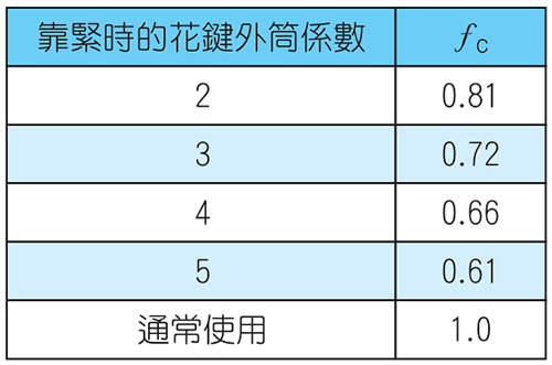 (注)在大型裝置中,若預料負荷分布不均等時,請考隙表下圖中的接觸系數。