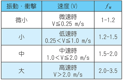 一般來說,作往返運動的機械,在運轉中大都伴有振動和沖擊,·特別是高速運轉時產生的振動及經常反覆啟動、停止時所引起的沖擊等,全部正確的計算出是很困難的。 因此·在不能得到際作用于直線運動系統上的負荷時,或者速度和振動的景景影影響很大時·請將基本額定負荷(C)和(Co)除以下表中由經瞼所得到的負荷系數。
