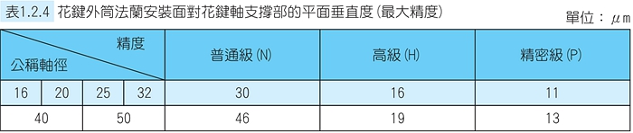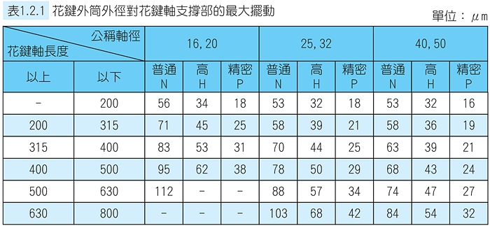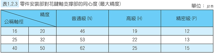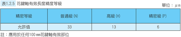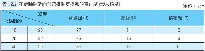 滾珠花鍵的各測試項目如下表1.2.1~1.2.5所示