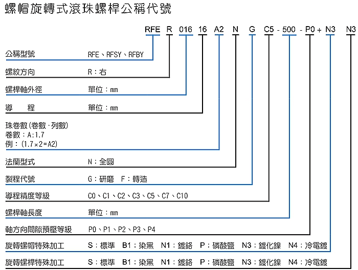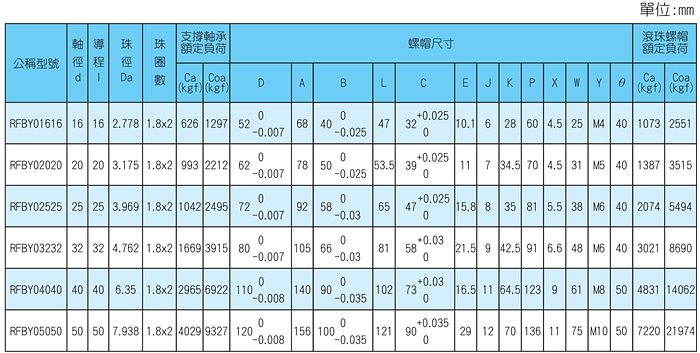 注:RFBY與RFE精度規格相同,選擇RFBY精度可按上表參考。
