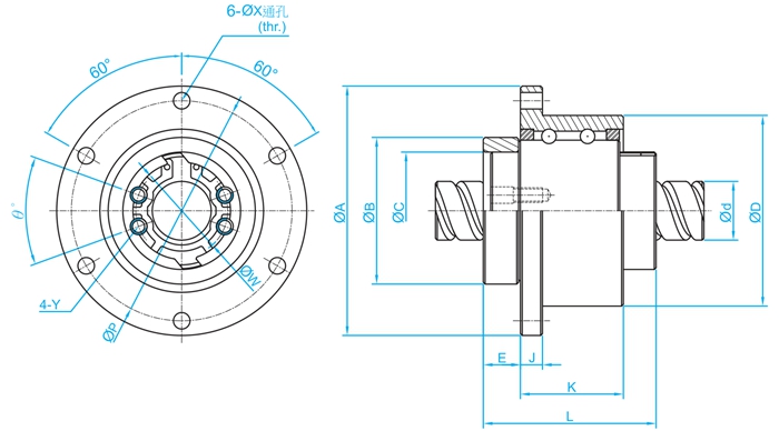 除了TBI滾珠桿螺桿螺帽對螺桿軸線的半徑方向圓周偏差(D)和法蘭安裝面對螺桿軸線的直角度(C)之外?RFBY型的精度以J1S規格(JISB1192-1997)為基準。