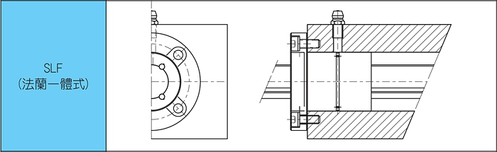 利用法蘭通過螺全都固定在支撐座上,因為裝配簡單,最實用在加工鍵槽有變形的危險或是支撐座的寬度比較狹小的場合,能完全地防止配合部分產生旋轉方向間隙