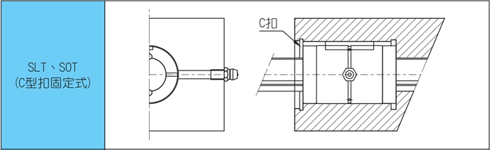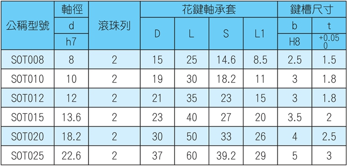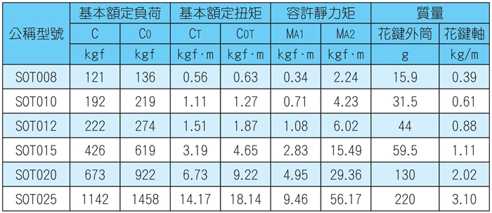SOT花鍵外筒的外徑為直筒型,在傳遞扭矩時將鍵敲入后使用,是安裝空間最小的形式之一