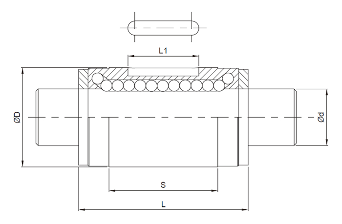 | 型號 | 軸徑 | 滾珠列 | 花鍵軸承套 | j鍵槽尺寸 | ||||
