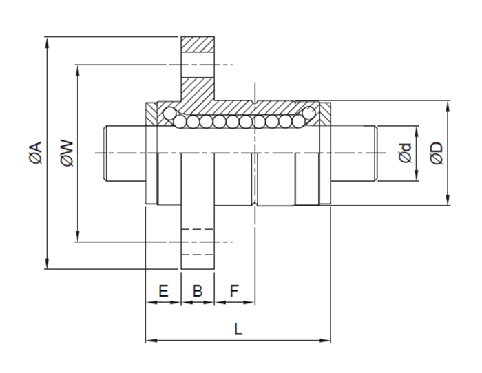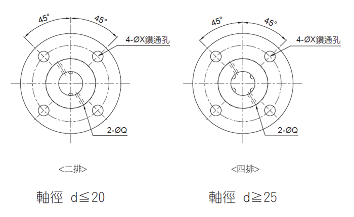 | d | D | L | A | B | E | F | 油孔 | W | 安裝孔 | ||