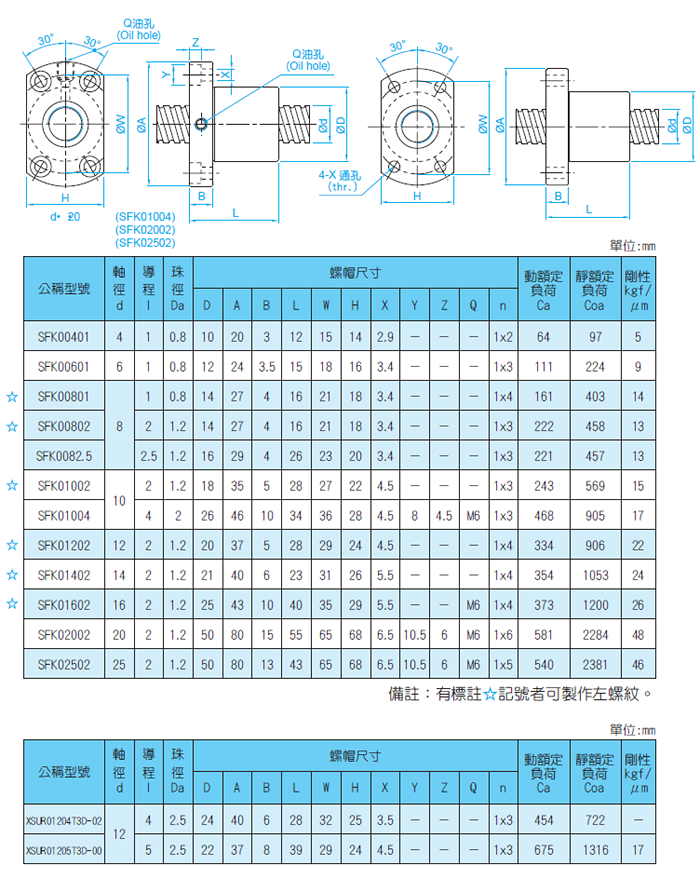 SFK滾珠絲桿通常用于需要精密定位的場合。高的機械效率、低的傳動扭矩和軸向游隙幾乎為零, 使得滾珠絲桿成為刀具定位和飛機副翼驅動這類應用中的重要裝置。然而, 阻力和由連續工作產生的熱量可能引起很大的摩擦力和定位誤差。
