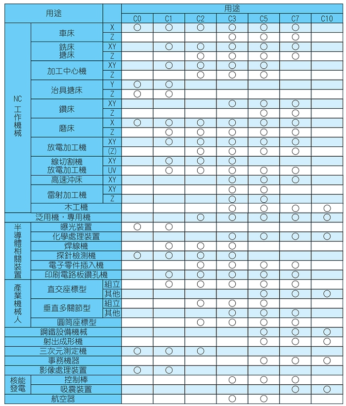 4.高精度的保證:TBI滾珠絲桿在研削、組裝、檢查各工序的工廠環境方面,對溫度·濕度進行了嚴格的控制,由于完善的品質管理體制使精度得以充分保證。精度公差:C10,C7,C5,C3,C2,C1--數字越小,精度越高。